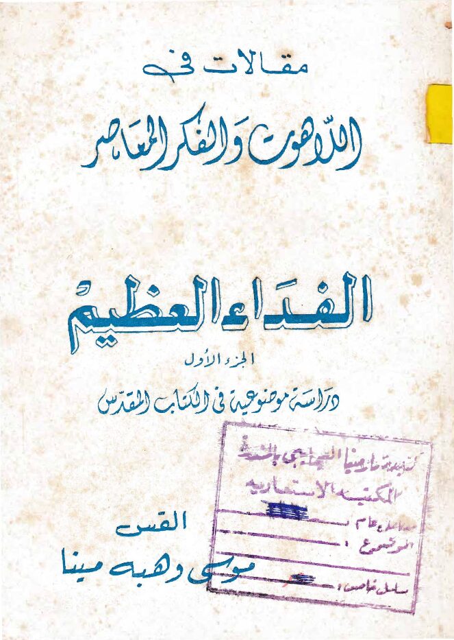 كتاب الفداء العظيم – القس موسى وهبة. الكتاب بصيغة Pdf للتنزيل المباشر أو القراءة على الموقع. بيانات