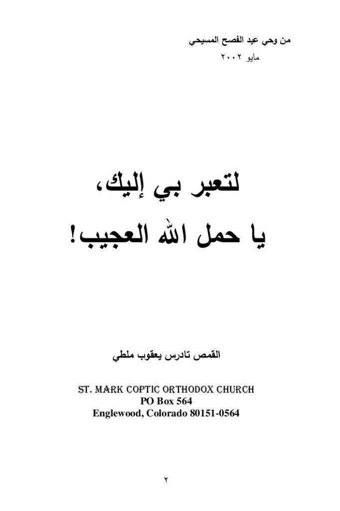 لتعبر بي إليك، يا حمل الله العجيب – عيد القيامة – القمص تادرس يعقوب ملطي. الكتاب بصيغة Pdf للتنزيل