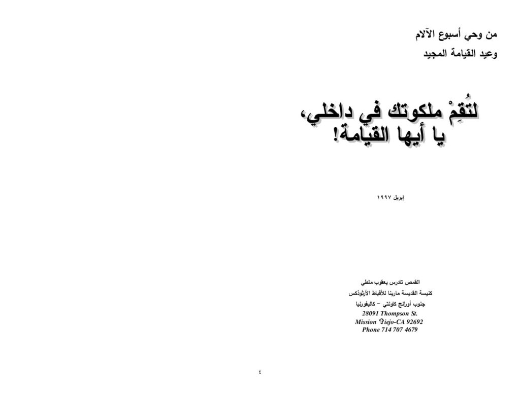 لتقم ملكوتك فى داخلى يا أيها القيامة – القمص تادرس يعقوب ملطي. الكتاب بصيغة Pdf للتنزيل المباشر أو القراءة